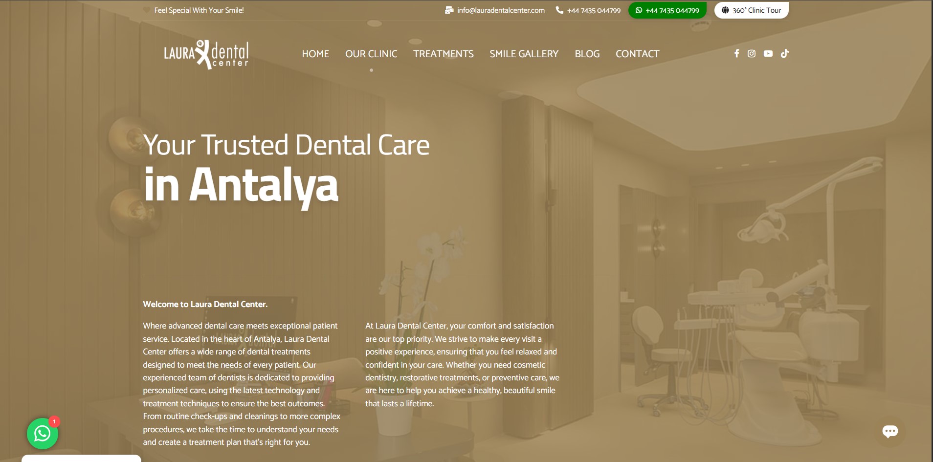 laura dental center için hastalara güven veren, bilgilendirici ve kolay anlaşılır bir dijital yapı oluşturduk. hem kullanıcı deneyimini güçlendiren hem de arama motorlarında görünürlüğü artıran bir web altyapısı kurguladık.